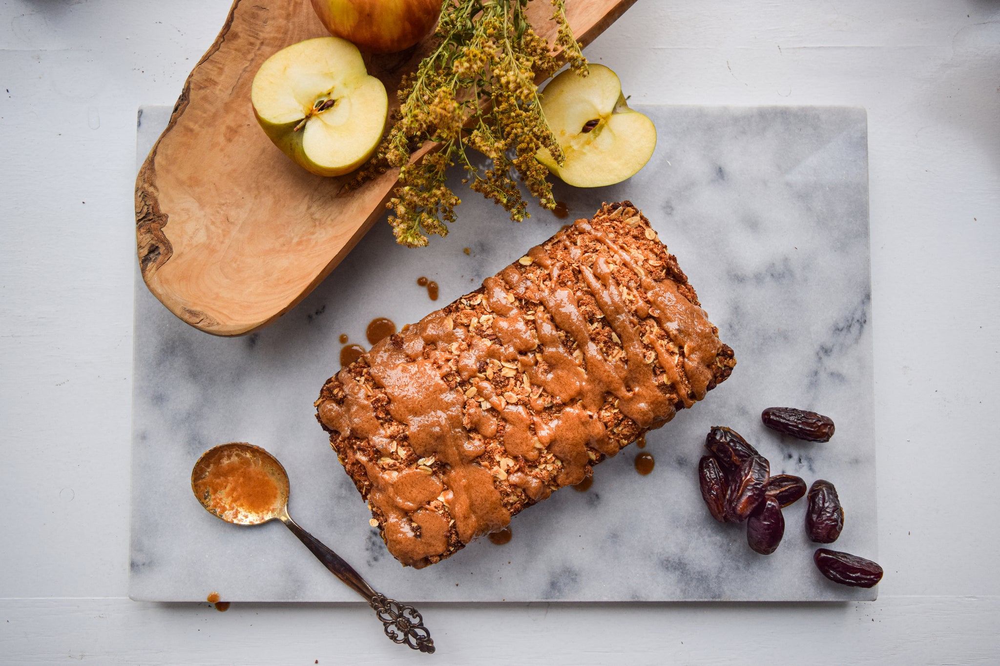 A lush cinnamon batter mixed with fresh shredded apples and, as if this isn't delicious enough, we top it with an apple crisp topping drizzled with an incredible date sugar caramel sauce. Loaf perfection!